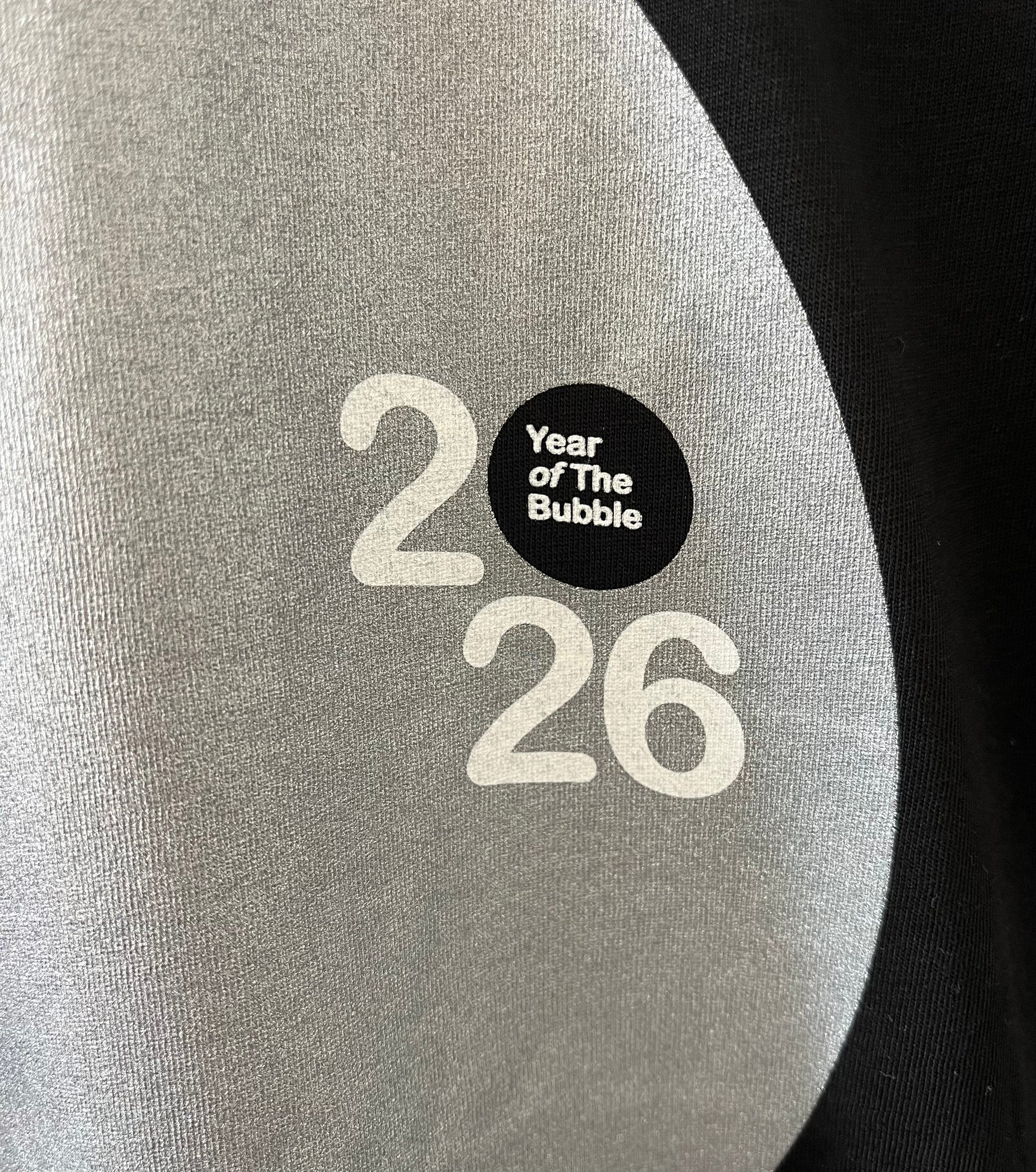 Light-weight organic tee. This screen printed Metallic Silver ink bubble will wear nicely throughout 2026 and beyond. All products sourced from AS Colour.